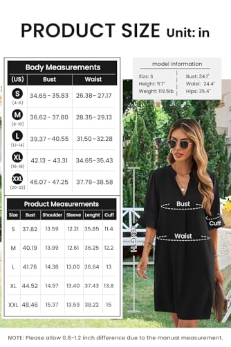 HOT ! Wkior Shift Dress for Women V Neck Short Sleeves Solid Color Casual Flowy Summer Dresses(S-2XL)
