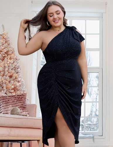 • Dazzling Design for Every Curv:This glamorous plus size one shoulder sequin cocktail dress,The asymmetrical neckline, sleeveless design, and flattering bodycon fit are elevated by a ruched wrap skirt that provides tummy coverage and enhances your curves. Intricately tailored along the bust, waist, and hips, this dress creates a sophisticated silhouette that celebrates your beauty