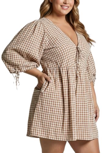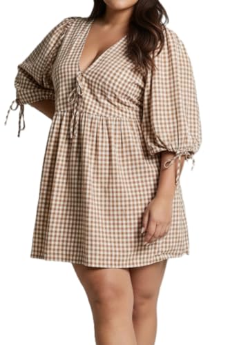 More information about Women's Gingham Puff Sleeve Tie Front Babydoll Mini Dress