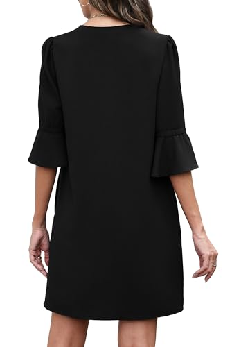 RUMIA Summer Dresses for Women 2025 V Neck Ruffle Short Sleeve Loose Casual Dress with Pockets 3