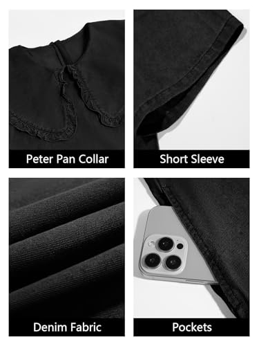 Wenrine Womens Summer Denim Mini Dress Oversized Peter Pan Collar Short Sleeve Casual Flowy Babydoll Jean Dresses 6