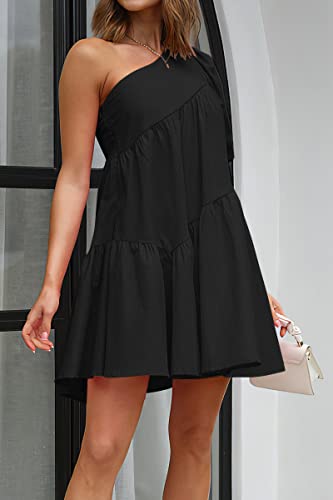 • TRENDY WOMENS DRESSES: One Shoulder Babydoll Mini Dress With Cute Puff Sleeves And Sexy One Shoulder, Sleeveless, Sweet While Showing Your Charming Neckline, Loose Cut Can Fit Any Figure. Perfect Dresses That Hide Belly Fat