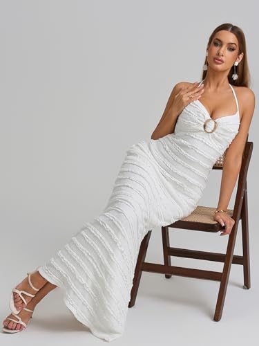 More information about HTZMO Women Elegant Summer Casual Bodycon Maxi Dress Sexy V Neck Halter Ruffle Wedding Guest Formal Long Dresses