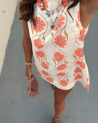 CHARTOU Women 2025 Summer Sleeveless Floral Short Shift Dress Cotton Linen Loose Tank Dress 4