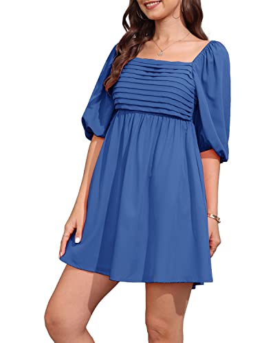 Ebifin Womens Square Neck Dresses Half Puff Sleeve High Waist A-Line Casual Backless Smocked Short Babydoll Mini Dress 2