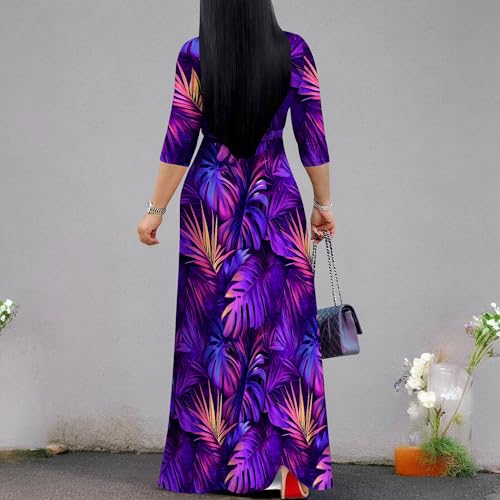 HOT ! Women's V Neck 3/4 Sleeve Maxi Dress Casual Floral Print Semi Formal Dresses with Belt for Vacation