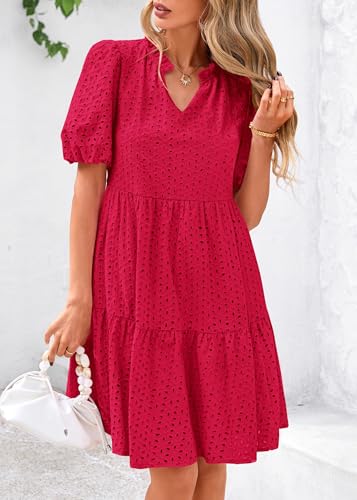 • Versatile Sundresses For Women: Casual Beach Vacation Clothes For Women/ Eyelet Dresses For Women 2025/ Cotton Shift Dresses For Women 2025/ Short Sleeve Summer Dress/ Mini Dress/ Pleated Tiered Dress Women/ Lace Embroidered Sundresses For Women/ A line Dress With Pockets/ Cute Hollow Out Beach Dress/ V Neck Party Dresses/ Elasticized Waistband/ Midi Thickness