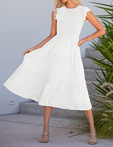 MEROKEETY Women's Flutter Short Sleeve Smocked Midi Dress Summer Casual Tiered A-Line Dress 6