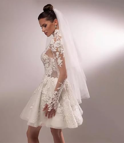 • Features: High quality lace wedding dress,short bridal gown,long sleeve,high neckline,floral lace applique, a-line,short,mini,built in bra,fully-lined,zipper closure.