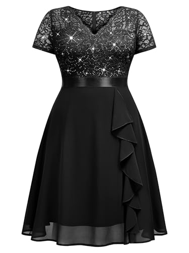 More information about MISSMAY Women's Plus Size Sequins Lace Contrast Chiffon V Neck Flowy Cocktail Party Prom Midi Dress