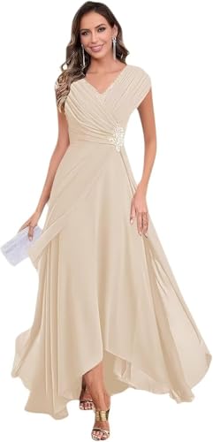 • High Quality: Chiffon short sleeve long grandmother of bride dresses, elegant flowy beaded pleated v-neck prom dresses for women plus size formal evening party gowns. Dressing the A-line grandmother of the groom dress, making you more elegant, simple, modest, charming, and confident at any special moment.