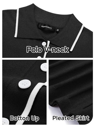 • Feature: Polo v neck, button down, short sleeve, ribbed knit, high waisted, swing pleated hems, midi length, basic cut; contrast color rips at neckline, cuffs add more fashion and romantic, summer dresses for women 2025.