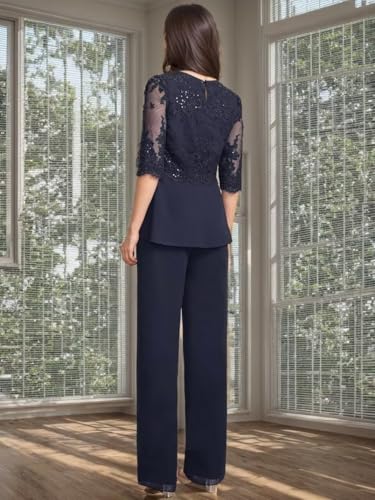 3 Pieces Mother of Bride Pant Suits with Jackets Laces Sequin Chiffon Mother of Groom Dresses 5