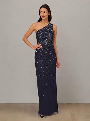 HOT ! Adrianna Papell Women's One Shoulder Beaded Gown, Dusty Navy