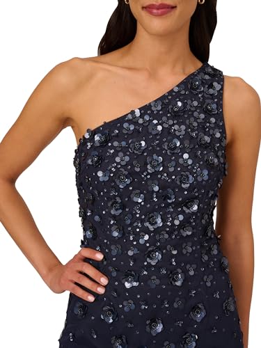 Adrianna Papell Women's One Shoulder Beaded Gown, Dusty Navy 6
