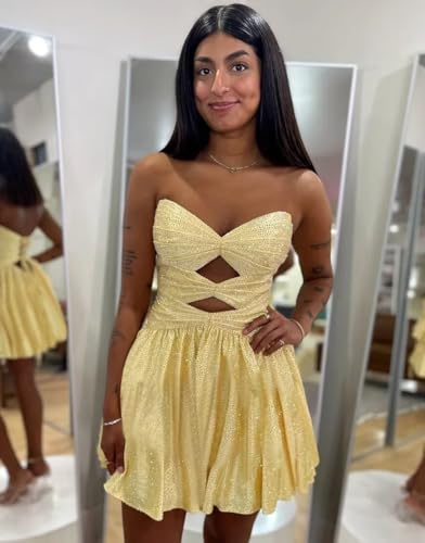 More information about Sparkly Sequin Homecoming Dresses Cut Out Short for Teens 2025 Strapless A Line Sweetheart Corset Party HOCO Dress