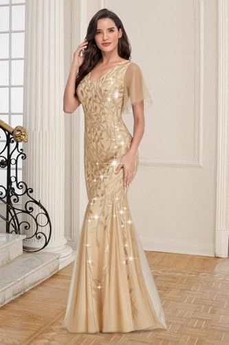 • Features:maxi length,sequin tulle fabric,v neck,bodycon,elegant bridesmaid dress,wedding guest dress,cocktail party dress,formal prom dress
