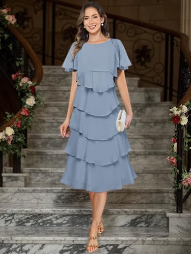 HOT ! MAGGCIF Ruffled Tiered Chiffon Mother of The Bride Dresses for Women with Sleeves A Line Formal Wedding Guest Dress