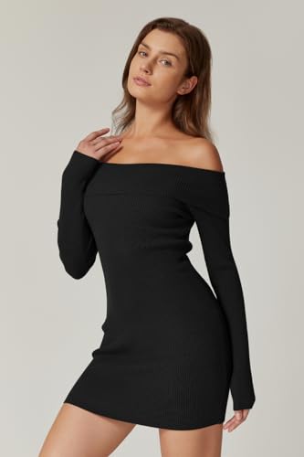 • Elegantly Minimalist Design: Ideal for day-to-night styling,this long sleeve mini dress features a slim fit and a off the shoulder look with a folded neckline detail, which elegantly shows off your shoulders and sexy curves