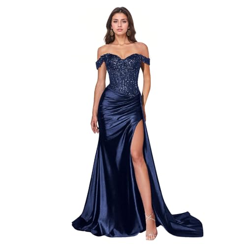 • Features:Off the shoulder prom dresses 2025,mermaid prom dresses with slit,glitter corset evening party gowns.Stretchy satin,sweetheart,floor length,built in bra.This prom dress make you more elegant, noble, charming and confident at any special moment. You will receive many compliments on this sexy dress!