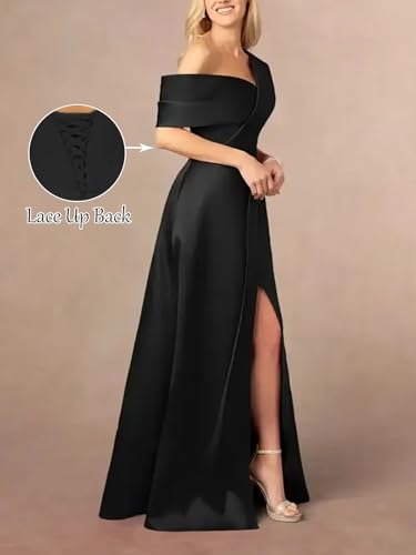 Women's One Shoulder Prom Dress with Slit Satin Floor Lenght Formal Evening Dress A Line Wedding Guest Dress 1