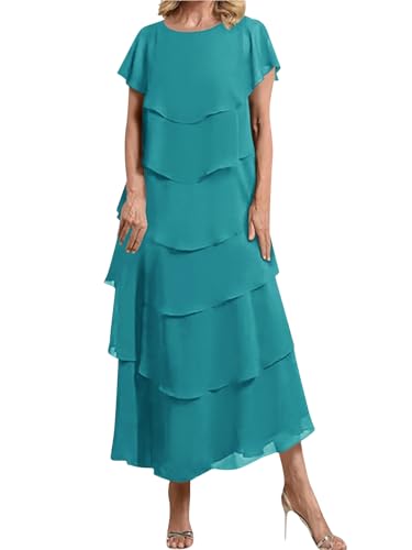 • 【Outstanding Features】: Tiered chiffon mother of the bride dresses for wedding, grandmother of the bride dress, Floor Length, evening gowns for women formal, Scoop Neck, Zipper Back, Built in Bra, Plus Size Mother of the Groom dress, Mother of the bride dress plus size, Wedding guest dresses.