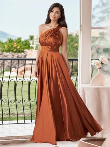 • Features:Elegant One Shoulder satin bridesmaid dresses long with bow,long prom dress for women,floor length,party gown,wedding guest dress,modest and simple wedding party dress is a pleasing pick,High Waist,Built-In Bra.