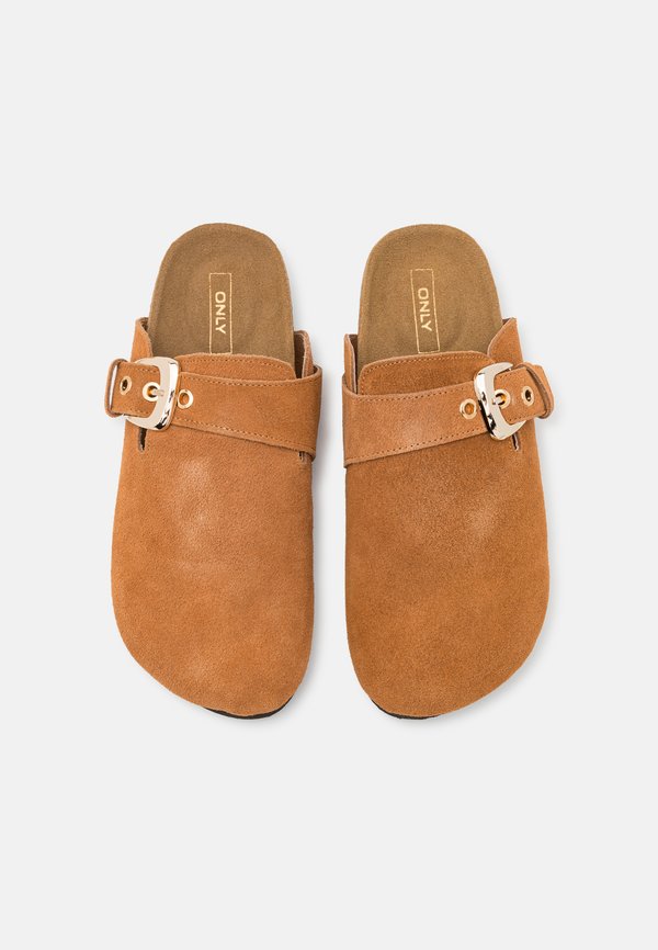 HOT ! LEATHER ONLHUSTON BUCKLE MULE - Slippers - cognac