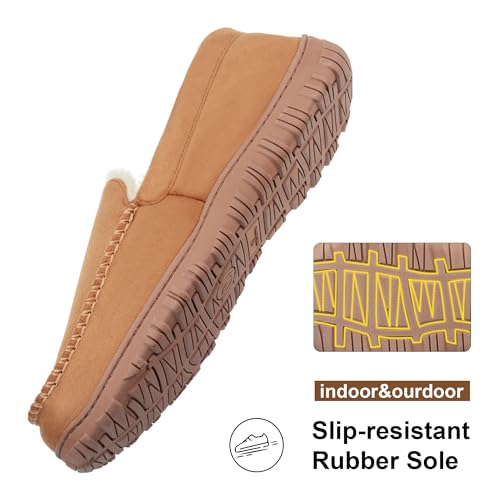 FLYFUPPY Mens Moccasin Slippers Memory Foam Slippers Warm Plush Fluffy Indoor/Outdoor House Shoes 5