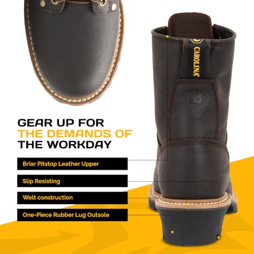 HOT ! Carolina Elm 8” Unlined Logger Boots for Men - Unlined Leather Upper, Pillow Cushion Footbed, and Welted Oil- and Slip-Resistant Outsole, EH Rated