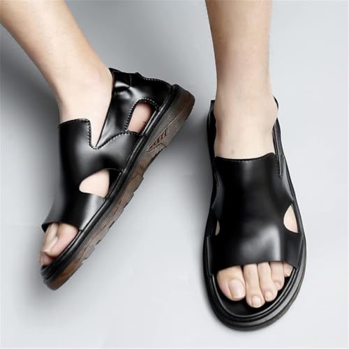 HOT ! Men's Sandals Breathable Leather Shoes Casual Sandals Men Shoe Retro Leisure New Flats(38)