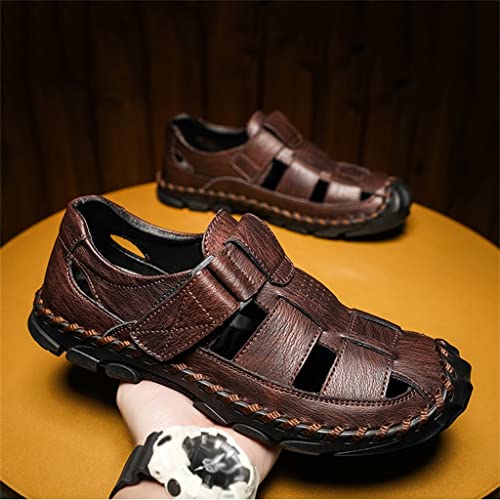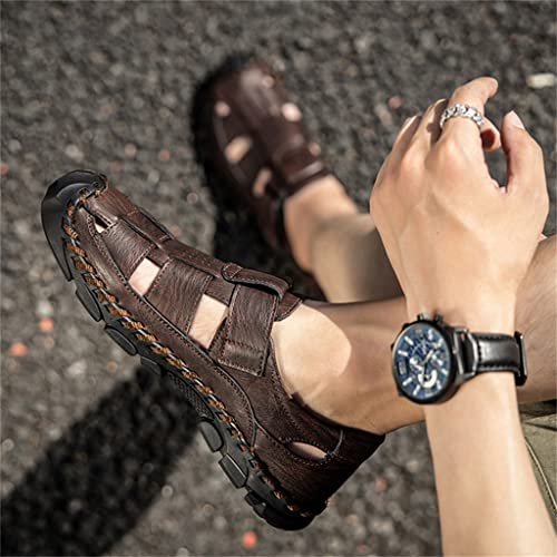 Sandals Men Breathable Leather Casual Shoes Men's Sandal Leisure Flats Retro Beach Shoe(48) 5