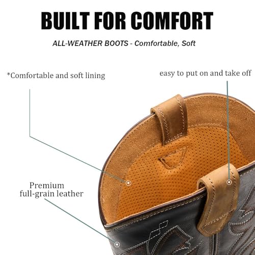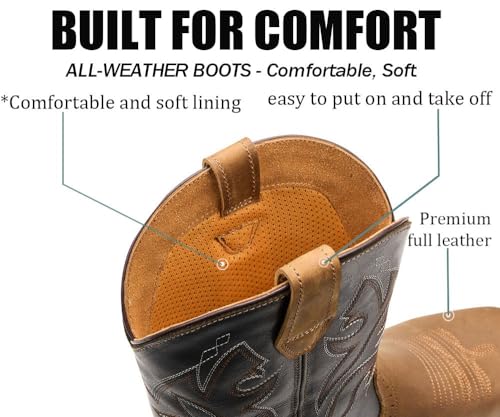 HOT ! SUREWAY Western Boots - Men’s Square Toe Work Boot,Pull On Leather Wellington Boots,Durable Classic Slip Resistant Soft Toe Cowboy Boot
