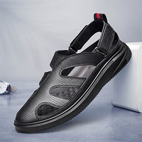 Fashion Leather Sandals for Men Business Dress Sandals Handmade Hollow Leather Shoes Men Sandalias(White-Patch Five-Pointed star4,44 Code) 6