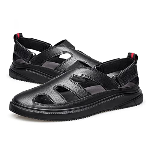 Fashion Leather Sandals for Men Business Dress Sandals Handmade Hollow Leather Shoes Men Sandalias(White-Patch Five-Pointed star4,44 Code) 5