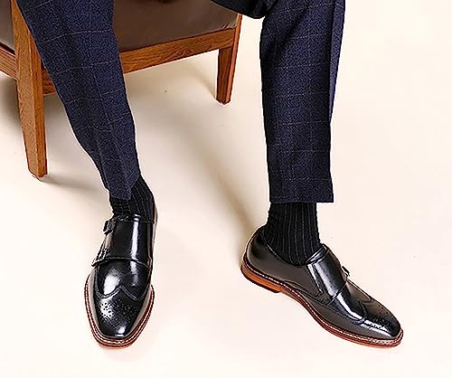 Santimon Mens Loafers Silp On Formal Dress Genuine Leather Double Buckle Monk Strap Loafers Fashion Comfort Business Shoes for Men 7