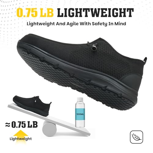 Slip On Steel Toe Shoes Men Women Waterproof Non Slip Lightweight Comfortable Walking Loafers No-Laces 6
