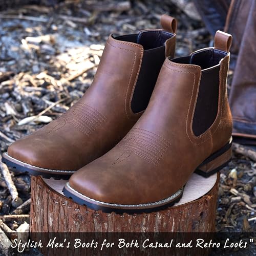 JASONSTAR Chelsea Cowboy Boots for Men Square Toe Western Boots Classic Casual Work Ankle Boots-botines para hombre 3