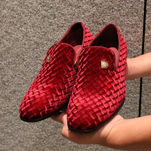 • ELEGANT AND SUBTLE-These burgundy loafers are the perfect combination of vintage fashion and modern style. Material is high-quality velvet with a diamond pattern and feels soft to the touch, a designer gold-toned buckle at vamp for timeless elegance.