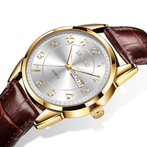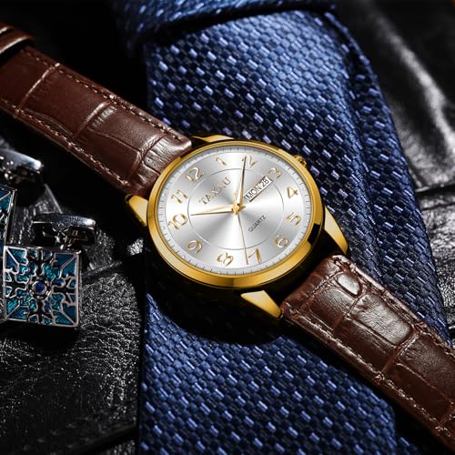 • Classic Design: This Taxau men's leather white watch combines minimalist texture and classic appeal. The classic hands round dial and Arabic numerals inspired by vintage clocks allows us to clearly feel the rhythm of time in every reading moment. Reach for it to give your evening look an extra hit of color