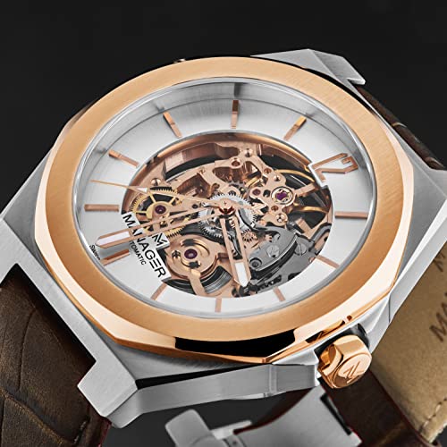 More information about Manager Men's 'Open Mind' Silver Dial Brown Leather Strap Automatic Watch MAN-RO-05-BL