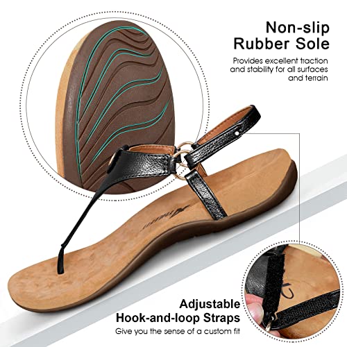 Athlefit Women's Comfortable Orthopedic Sandals Thong Dressy T-Strap Orthotic Casual Summer Arch Support Sandals 5