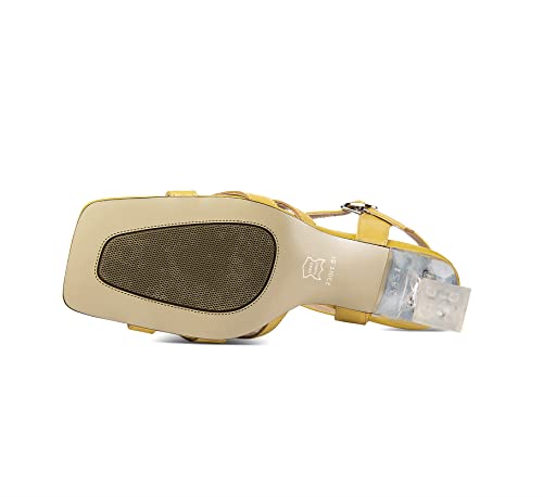 TinaCus Women's Handmade Genuine Leather Open Toe Sling Back Transparent Heel Sandals with Buckles 5