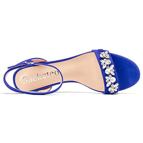 Saekcted Women Chunky Block Mid Heel Peep Open Toe Sandals Ankle Strap Rhinestone Crystal Casual Dress Shoes 4