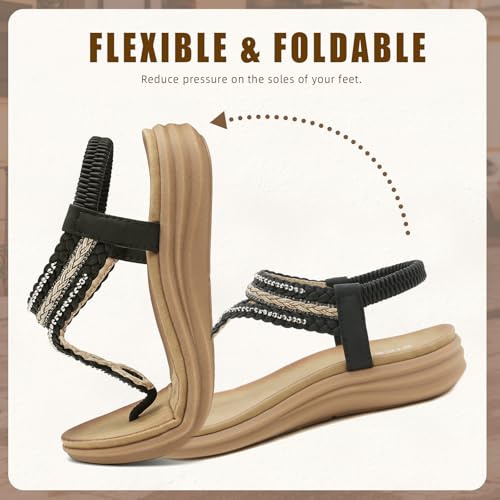 • ARCH SUPPORT - Designed with arch support, these sandals for women offer unparalleled comfort, making them ideal for casual outings, beach vacations, or even dressy occasions like weddings. The bohemian style and rhinestone design add a touch of fashion to your summer wardrobe