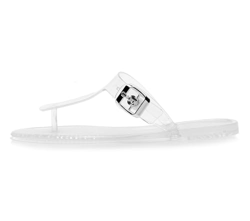 Women Sandals Thong Flip Flops Jelly Shoes Adjustable T-Strap Jellies Flats Clear Dress Slipper Summer Beach Pool Slides Size 10 Slip On Quick Dry Soft 7