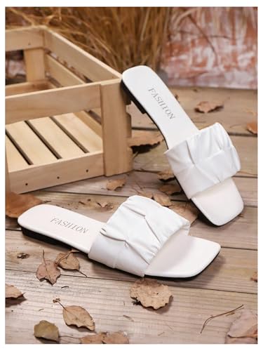 More information about Women's Ruched Square Toe Flat Sandals Single Band Summer Dressy Vacation Slip on Slides