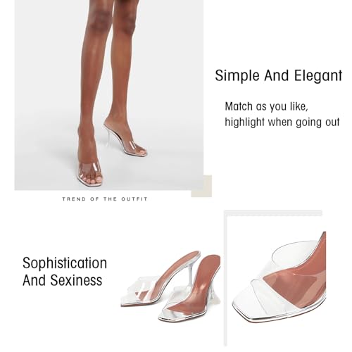 More information about Women'S Clear Square Toe Open Stiletto Slide Sandals Fashion Transparent Strap Slip-On Sexy Backless High Kitten Heel Mules Summer Party Wedding Prom Dress Shoes