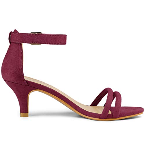 Allegra K Women's Kitten Heel Ankle Strap Burgundy Sandals 8.5 M US 5