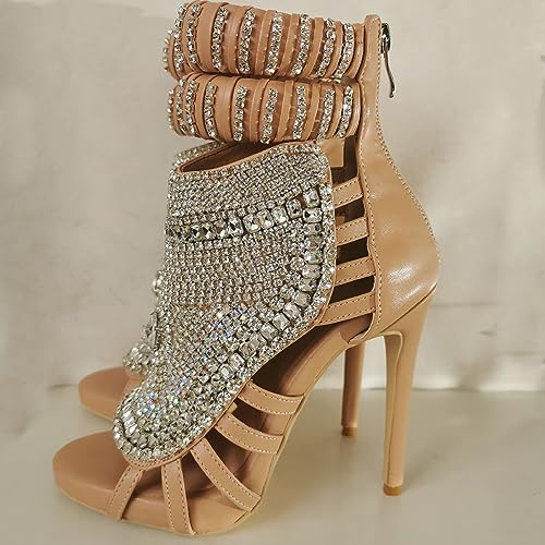 More information about Women Stiletto High Heel Heavy Duty Sandals Open Toe Crystals Diamond Pave Ankle Strap Wedding Dress Shoes Prom Pumps